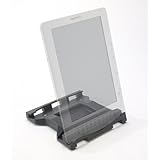 Hold your Kindle at "15 degrees from vertical", "15 degrees from flat" to adjust for different lighting conditions or to your reading posture. Keep your Kindle and Cover safely above accidental spills when reading while eating. Feather-light at just 5.4 ounces, the one-piece design is made of resilient ABS plastic. You choose between provided felt and rubber pads so your reading stand either easily slides on table surfaces (use the felt pads) or stays put (use the rubber pads). Hold your Kindle in landscape mode and still have access to buttons and controller. A charging slot in the "15 degrees from flat" position allows you to charge your Kindle while in the stand. Eat while you read hands-free in the kitchen, at the café or during your lunch break at work or relaxing on the sofa. The low-profile stand is less than 1 inch high, shorter and narrower than your Kindle, making it highly-portable. Handsomely displaying your Kindle when not in use also makes it easy to find. When reading for long periods of time, vary your handgrip by holding the Kindle in the reading stand with your fingers in the finger slot on the underside of the stand. Kindle's speakers perform best by reflecting sound when placed on a table surface. Kradle SQ similarly and effectively reflects the sound from its reflective surfaces and slots in both the "15 degrees from vertical" and "15 degrees from flat" positions. Read more